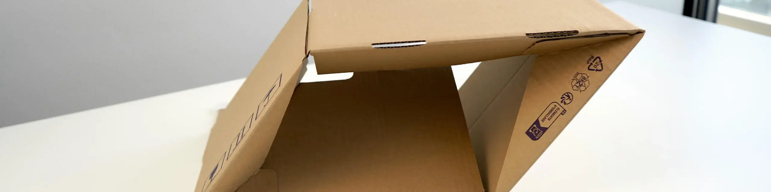 - Aufrichten: Den flachen Karton in die Hand nehmen und die beiden schmalen Seitenwände sanft zusammendrücken.